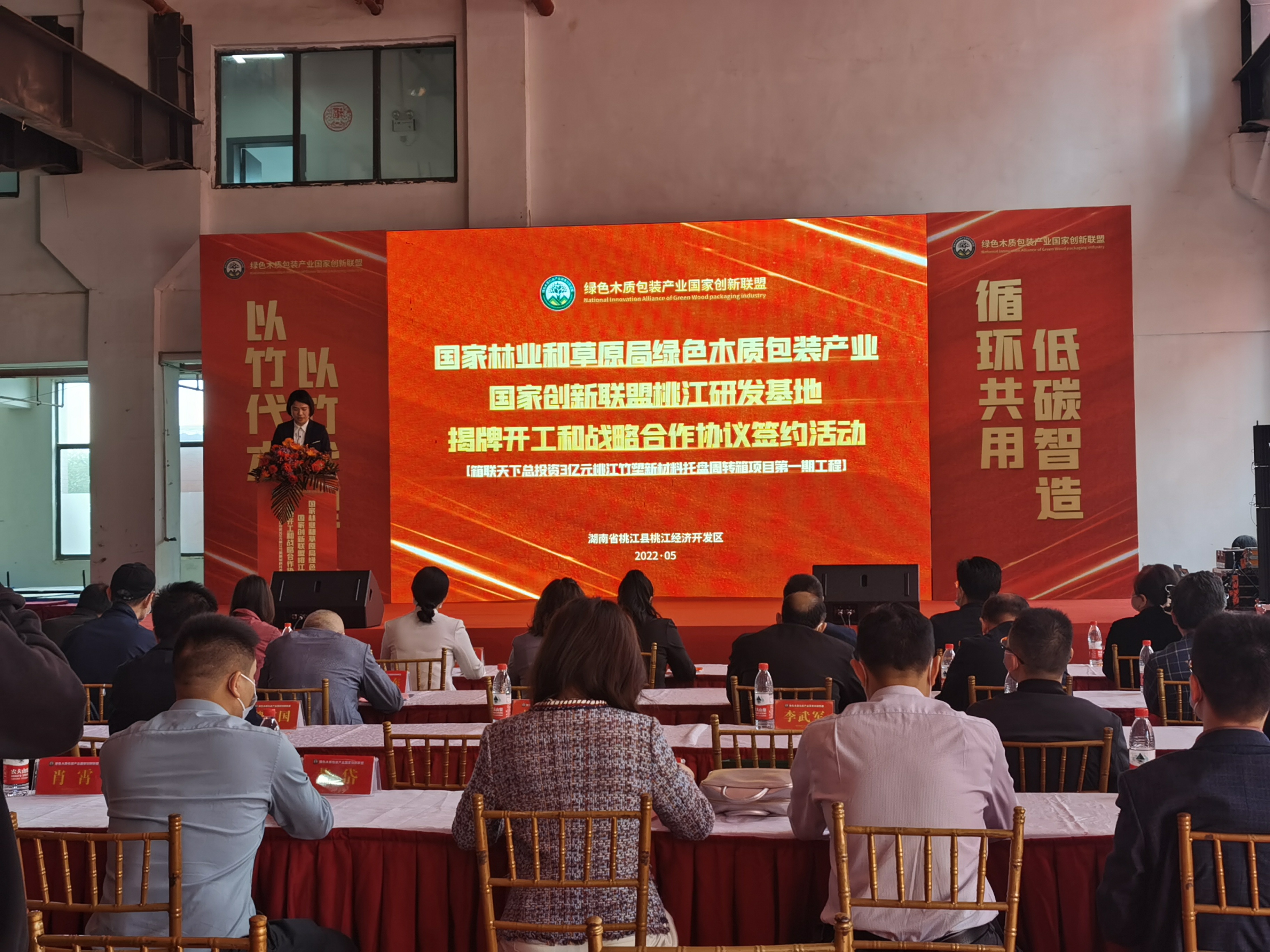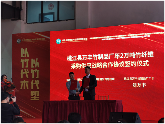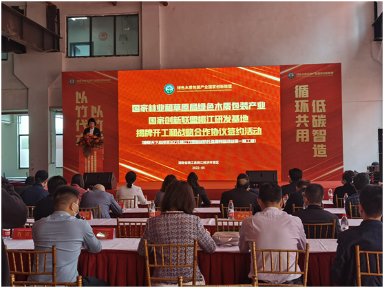5月20日上午,竹塑新材料托盘周转箱一期项目揭牌开工及战略合作协议签订仪式在桃江经开区举行。本次签约采取“线上+线下”的形式进行,中南林业科技大学、湖南师范大学、湖南省物流与采购联合会、长沙汇洋环保公司、桃江万丰竹制品厂以及来自全国的首批经销商分别与项目单位签订了战略合作协议。