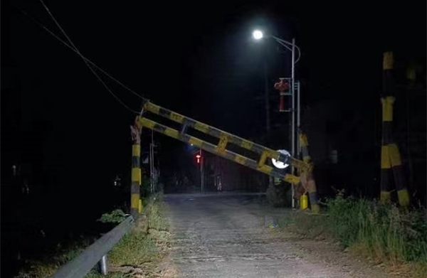 5月18日,桃江县灰山港镇一限高架掉落,危及过往行人车辆,当地派出所民警与村委干部一道,联系专业设备将限高架复位加固,及时消除了这一安全隐患。