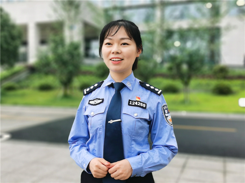 县公安局人口大队窗口民警丁佳琼接受媒体采访