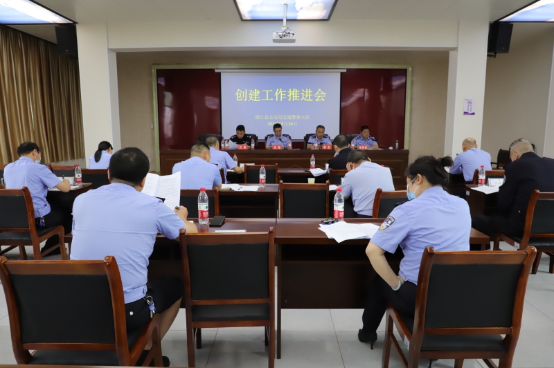 5月26日,桃江县公安局交通警察大队组织召开创建工作推进会,大队领导班子成员及队属各单位主要负责人参加会议。
