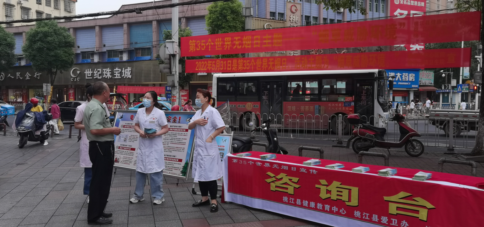 5月31日,县卫健局组织健康教育中心、爱卫办、疾控中心和桃花江镇卫生院在新龙超市门前开展第35个世界无烟日宣传活动。