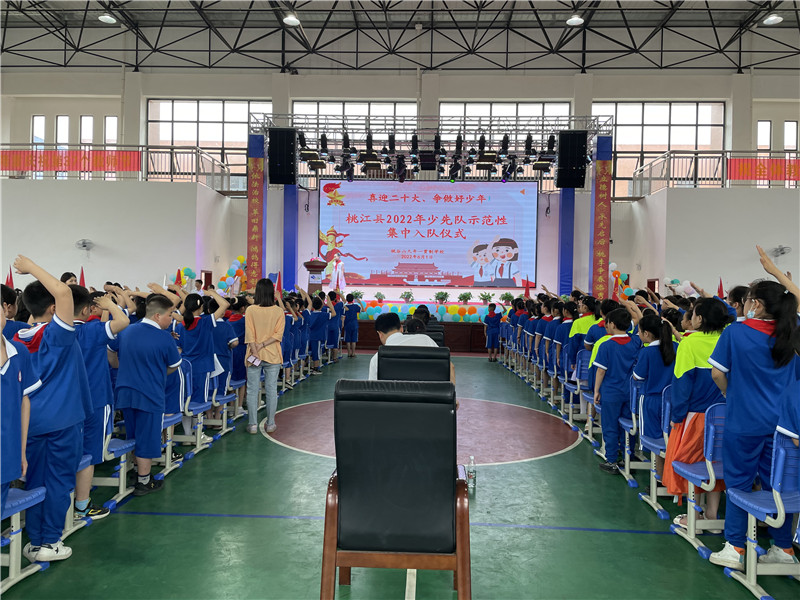 6月1日上午,桃谷山九年一贯制学校举行少先队新队员入队仪式,162名少年站上“人生第一高度”,全校师生共1100余人参加活动。