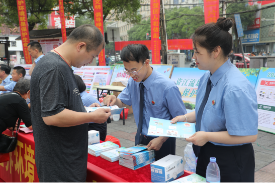 活动现场,检察干警以通俗易懂的方式向群众宣传讲解环保法律法规、检察机关在污染防治中取得的成效、检察公益诉讼受理案件范围、公益诉讼线索举报途径等内容。同时,与现场群众进行良好互动和有奖竞答,向群众发放宣传资料,积极传播“共建清洁美丽世界”的环保理念,着力倡导远离白色污染、崇尚绿色生活,“低碳”出行,并呼吁大家积极提供公益诉讼线索,凝聚生态环境公益保护合力,共同守护绿水青山美丽家园。