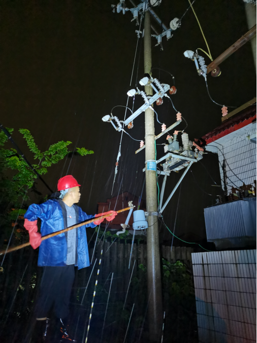 凌晨3时56分,经工作人员冒雨快速维修更换烧坏的高压熔丝并检查无误后鲇鱼港电排恢复送电,随即7台水泵全部投入正常运行,及时有效的排出了鲇鱼港电排前池渍水,确保县城人民群众的生命财产安全。