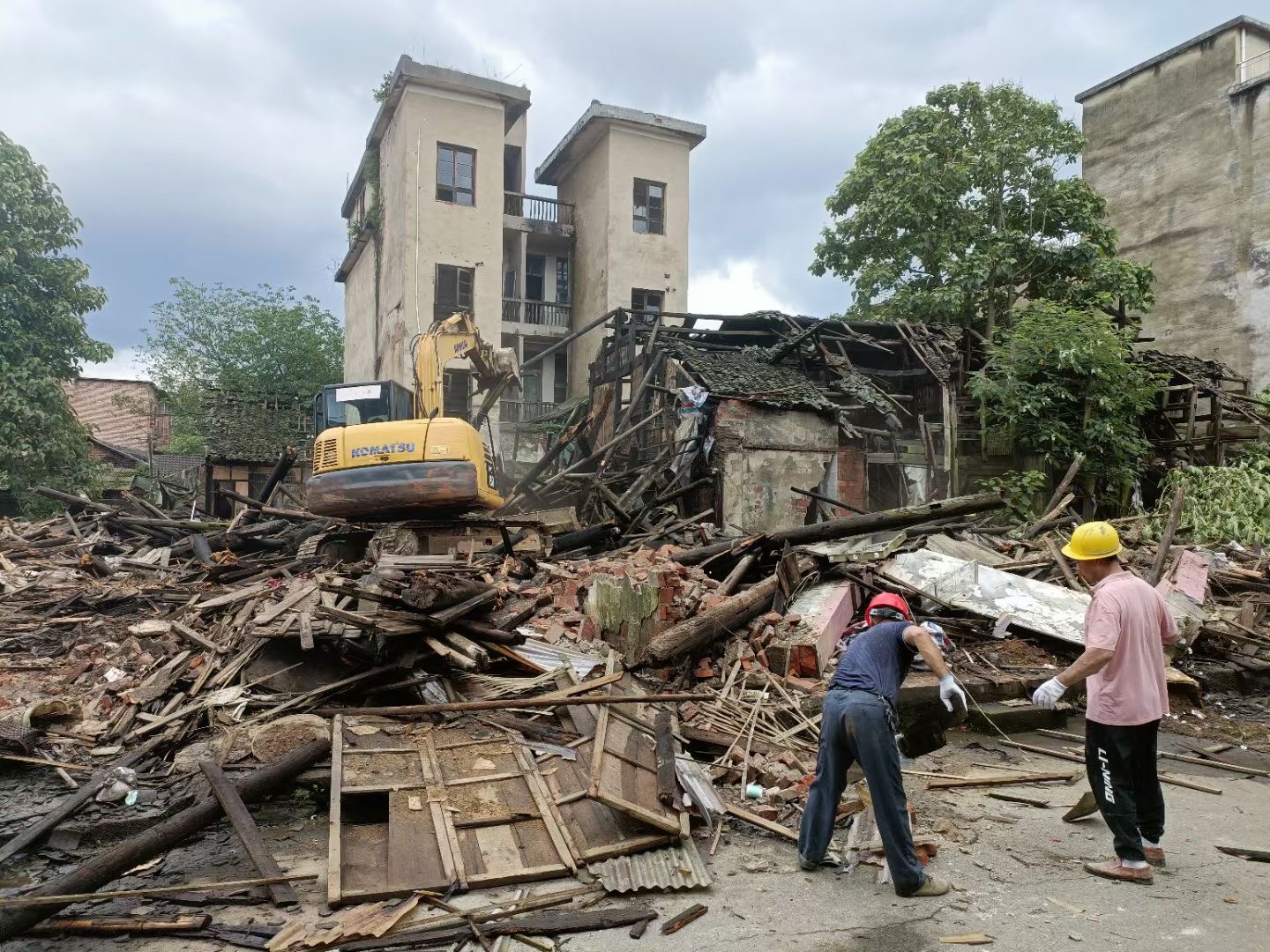 6月4日上午,伴随着机器的轰鸣,马迹塘镇资沂路老街沿线危旧公房顺利拆除。