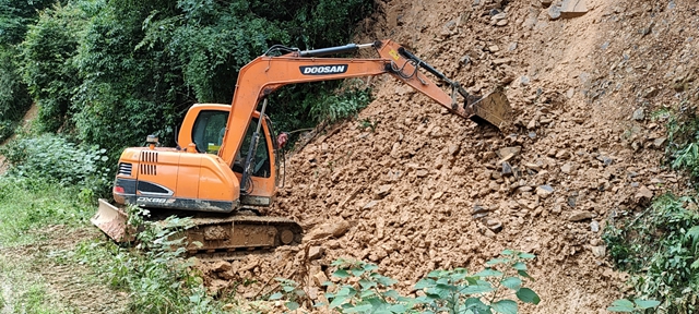 此轮强降雨,造成桃花江灌区渠道边坡山体滑坡、垮塌27处,机电设备损坏6处,给渠系工程带来一定影响。为保证渠道畅通和下阶段农田用水需求,桃花江灌区管理局迅速行动。端午节当天,组织37名渠道管理人员对各自责任渠段进行全线查险处险,对损坏的渠道、建筑物及信息化机电设备登记造册,制定修复计划和施工方案。下午,立即组织人员冒雨开展水毁修复工作,重点对影响通水的内滑坡卡口和严重险工险段进行突击处理,以避免险情进一步扩大,杜绝发生次生灾害。同时,要求桃花江灌区各管理所密切关注天气变化,加强渠道巡查,加快修复进度,在6月8日前完成水毁修复,确保雨停后渠道能正常通水。