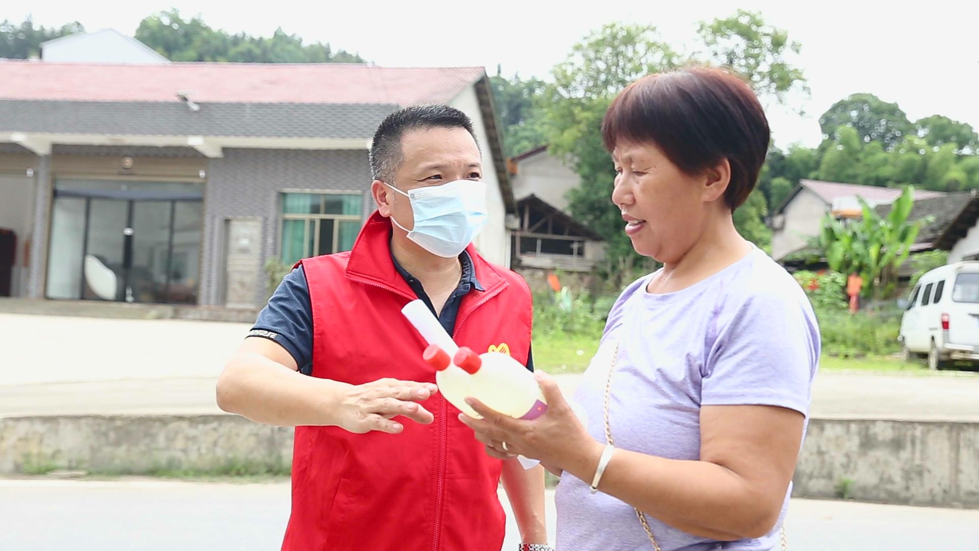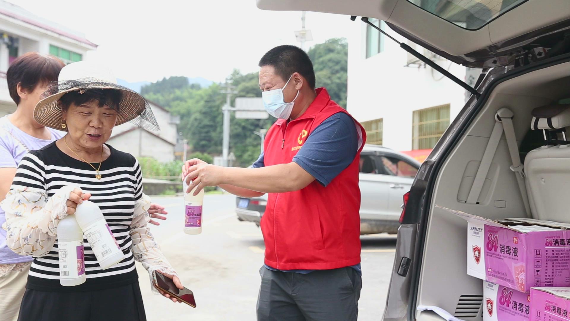 6月6日一大早,县疾控中心6位党员志愿者驱车来到马迹塘镇,顶着高温为镇中心医院送去了10箱消毒剂,还深入金塘村部分村民家中,为他们送去瓶装消毒液、发放《洪涝灾害防病知识要点》宣传单,科普洪灾后卫生和防疫知识。