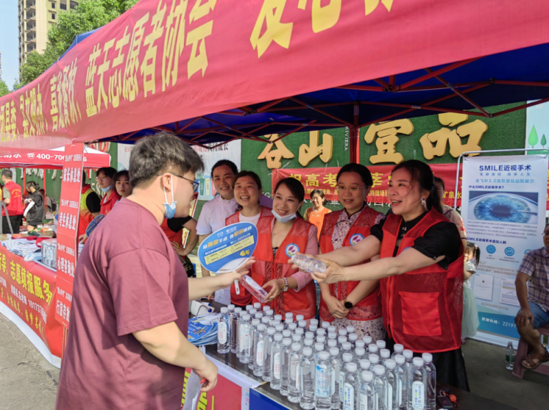 医院志愿者们不仅为学生家长测血压,安抚家长紧张情绪,还嘱咐考生及家长要注意高考期间的饮食卫生,为高考师生和家长提供医疗咨询服务。同时,医院还为两个考点提供了2000瓶矿泉水和200套防暑物资,助力高考。