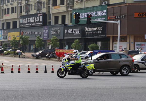 交警大队对考点学校周边道路实行临时交通管制,设立绕行提示和禁止鸣笛标牌,加强车辆指挥疏导,严查交通违法行为,确保考点门前交通秩序井然有序。大队还在两个考点部署了“铁骑护考小分队”,充分利用其机动灵活的特性,进行爱心护考。