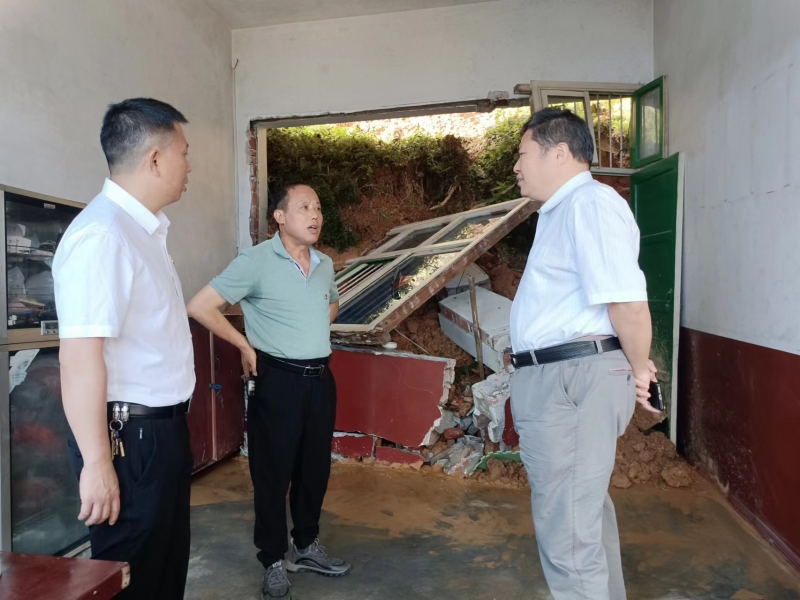调研组查看移民安置区强降雨灾情(唐要善 右一)