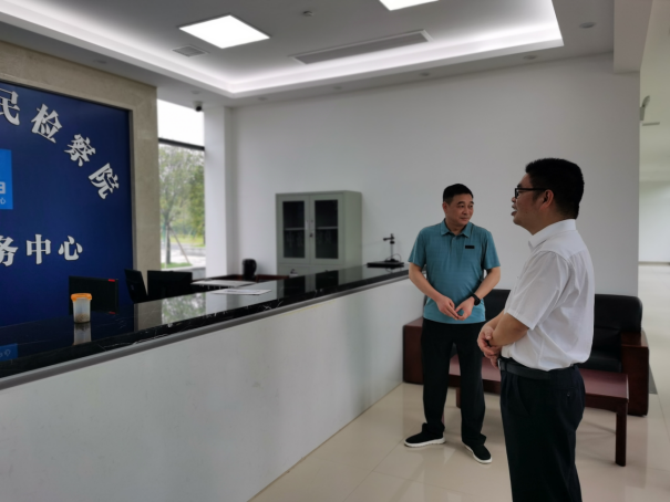 许琼山一行先后参观了桃江县检察院12309检察服务中心、检察听证室、案件受理大厅、案件受理分流室、“一站式”办案工作区等。
