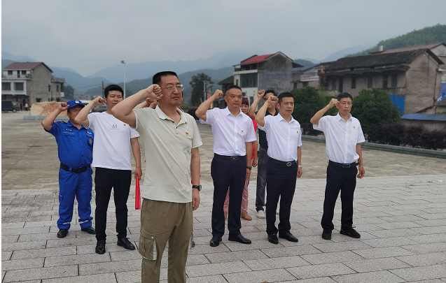 在张昆弟纪念广场,所有党员举行重温入党誓词仪式。全体党员高举右拳,面对党旗再一次庄重地作出自己对党的庄严承诺。随后,志愿者来到了沾溪镇杉木村孤寡老人伍桂秀家,为她送去了温暖。