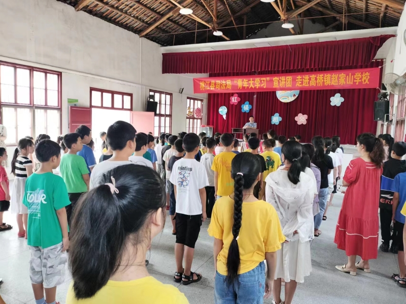 6月21日,县司法局“青年大学习”宣讲活动首站在高桥镇赵家山学校礼堂举行。