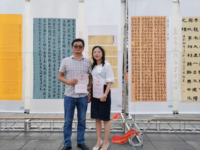 6月23日,2022年桃江县禁毒宣传进万家主题活动暨禁毒书法作品巡回展正式启动。在巡展的130幅作品中,有3件作品来自武潭镇的一家三口——爸爸殷赤武和妈妈吴毅分别荣获社会组二等奖,女儿殷一琴荣获学生组一等奖。