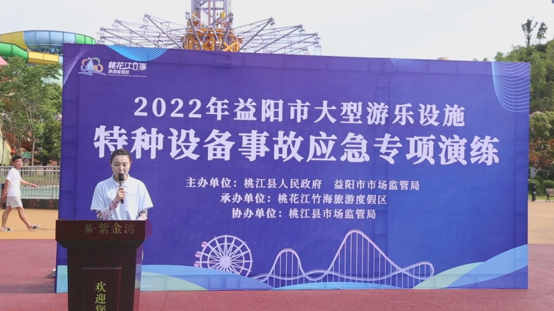 6月27日上午9点,桃花江竹海旅游度假区开展大型游乐设施特种设备应急专项演练。