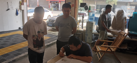 图为牛田镇工作人员上门督促主播签订《承诺书》