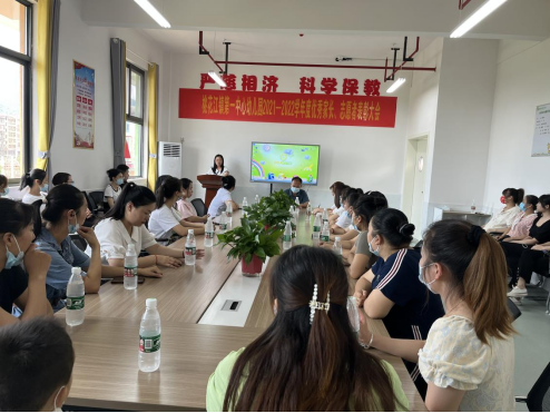 7月1日下午,桃花江镇第一中心幼儿园召开大会,对2021—2022学年度的20位优秀家长和20位优秀志愿者进行表彰。