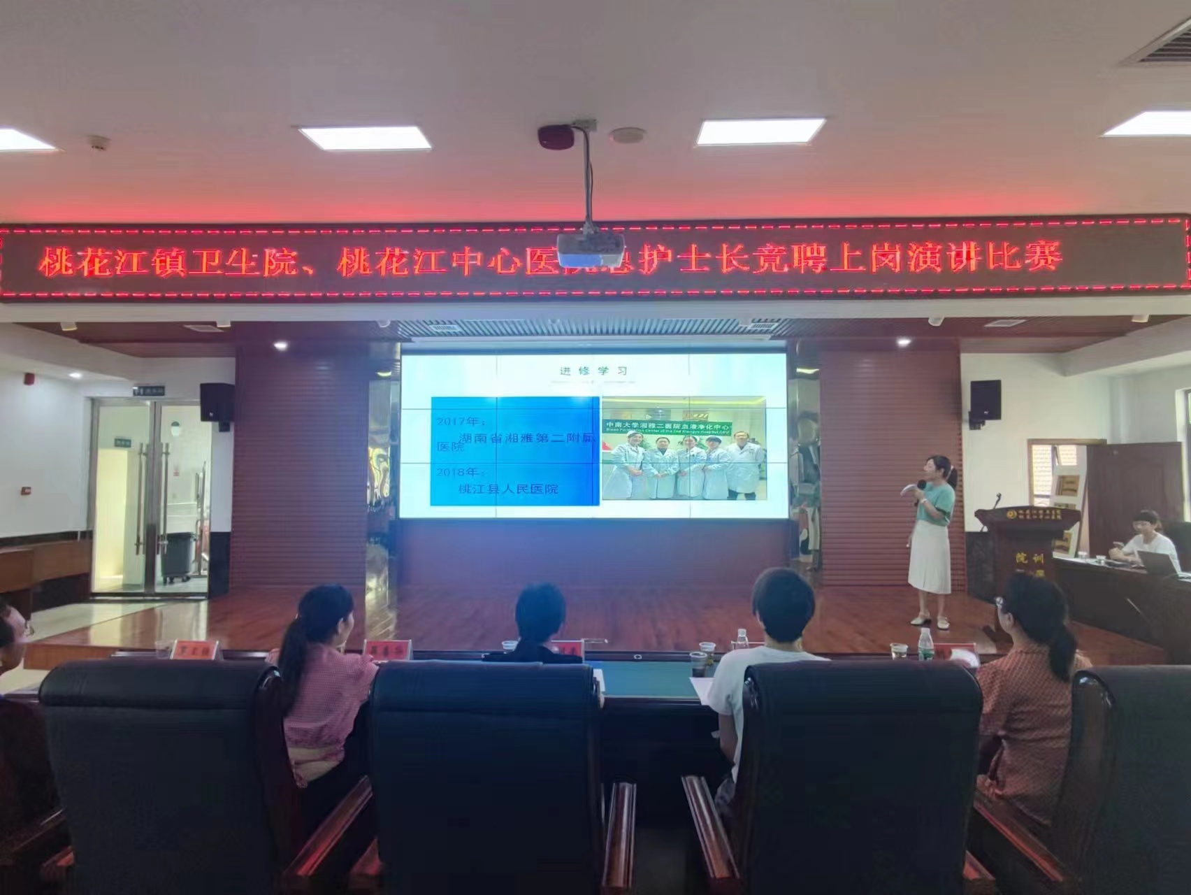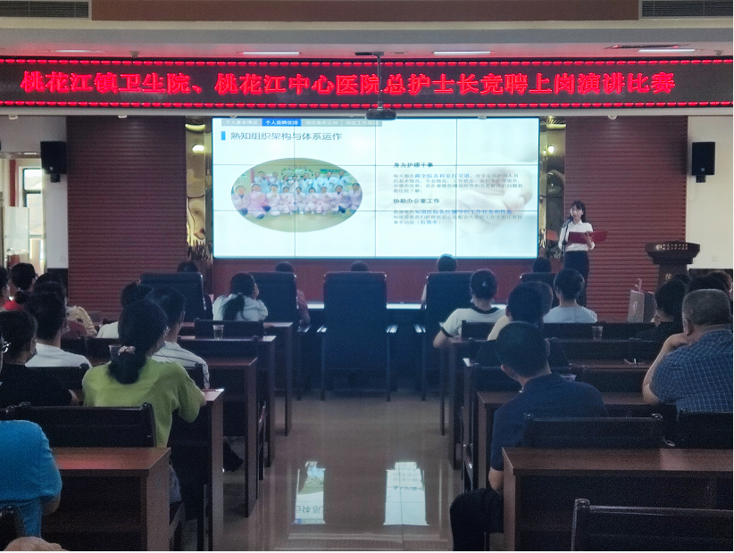 7月1日,桃花江镇卫生院、桃花江中心医院在大会议室举行总护士长竞聘上岗,全院干部职工200多人员参加。