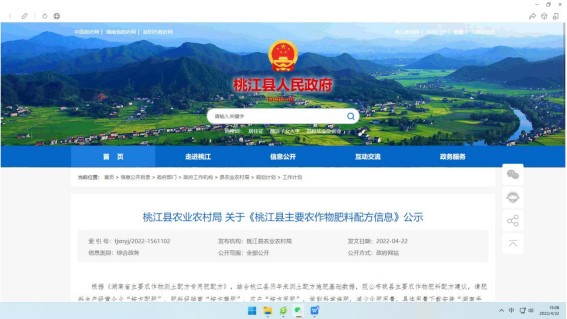 自2015年以来,我县围绕本县主要农作物,累计开展各类田间肥效试验65个,通过总结分析田间肥效试验成果,结合各类作物养分需求规律和土壤养分状况,利用测土配方施肥数据管理平台,制定了适合本县主要农作物肥料配方18个,并在媒体网站发布,同时采取施肥建议上墙、科学施肥技术培训、发放施肥建议卡、湖南测土配方施肥App推广、村村响广播、农技人员现场指导等多种形式指导农户科学施肥。2021年,全县推广测土配方施肥面积153.9万亩,主要农作物测土配方施肥技术覆盖率96.14%。