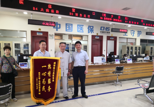 “非常感谢你们,让我这个老爹爹每个月都能报销药费,以后吃药都不愁哒。”7月6日上午,郭老为县医保局送上一面绣着“热情服务 一心为民”字样的锦旗,握着工作人员的手感慨道。