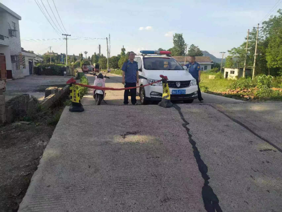 7月11日下午4点许,桃江县交通运输综合行政执法大队四中队执法人员在路政巡查中发现,因持续高温天气,原S231线156公里+100米处路面凸裂,凸裂处高于原路面60厘米左右,导致过往车辆无法正常通行,存在重大安全隐患。
