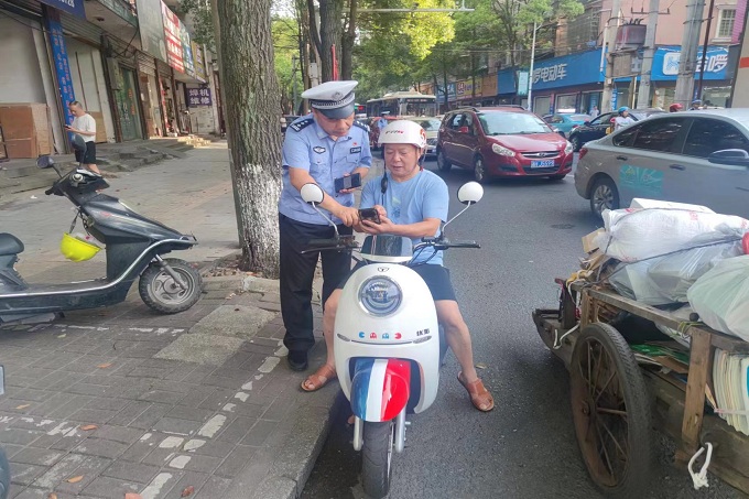 “这么热的天,你们还在路面执勤维持交通秩序,太不容易了!”7月22日上午10时许,在桃花江镇芙蓉路农业银行路段“一盔一带”整治点,许多群众看到正在烈日下忙碌的交警,心里生出许多感慨来。