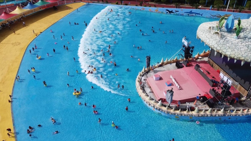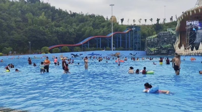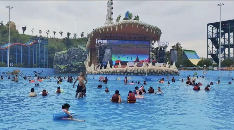 水上乐园占地近6000平方米,针对游客的年龄和喜好设置有模拟冲浪区、深水区、浅水区以及沙滩休闲区。“在这里一边游泳、一边看节目演出,大城市的设施在家门口也能体验到,非常不错!”带着一家人前来游玩的游客蔡立辉自豪地说道。