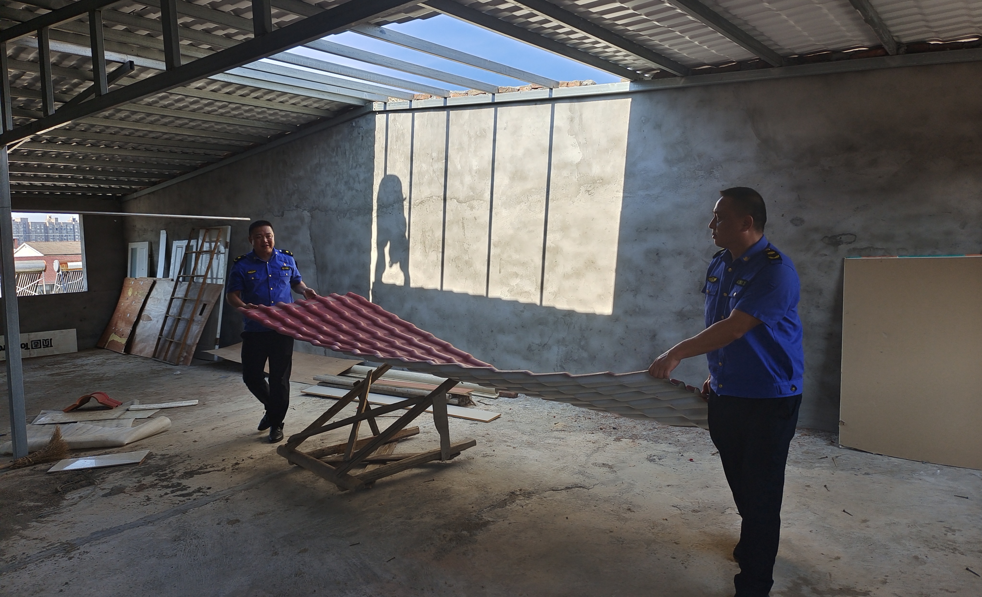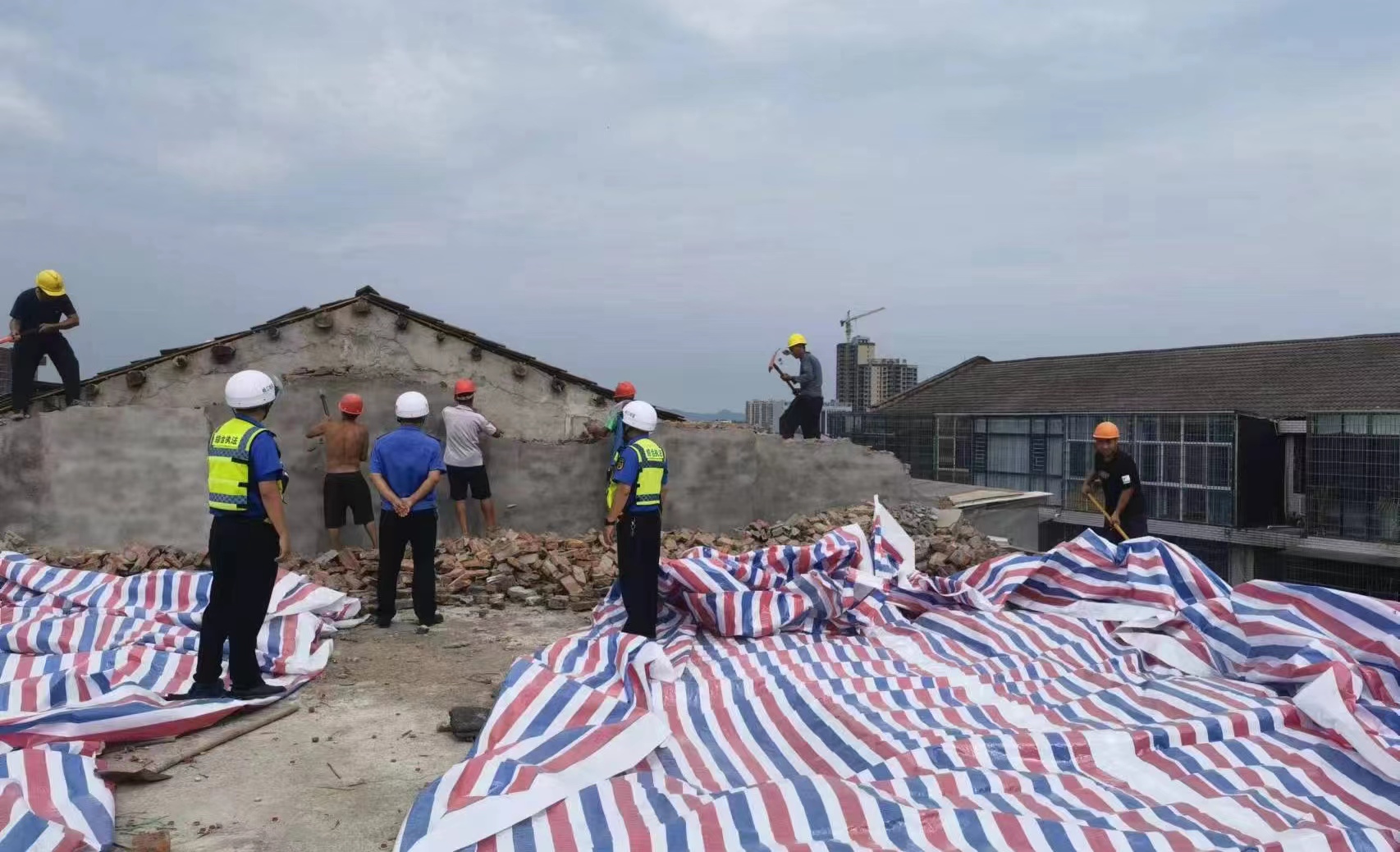 【自建房排查】 县城管执法局依法拆除县城一自建房擅自加建的两层房屋