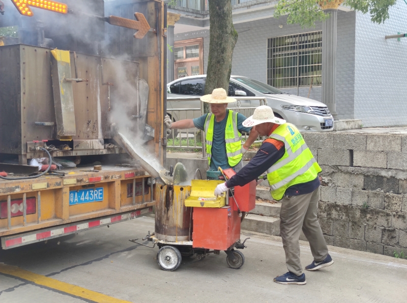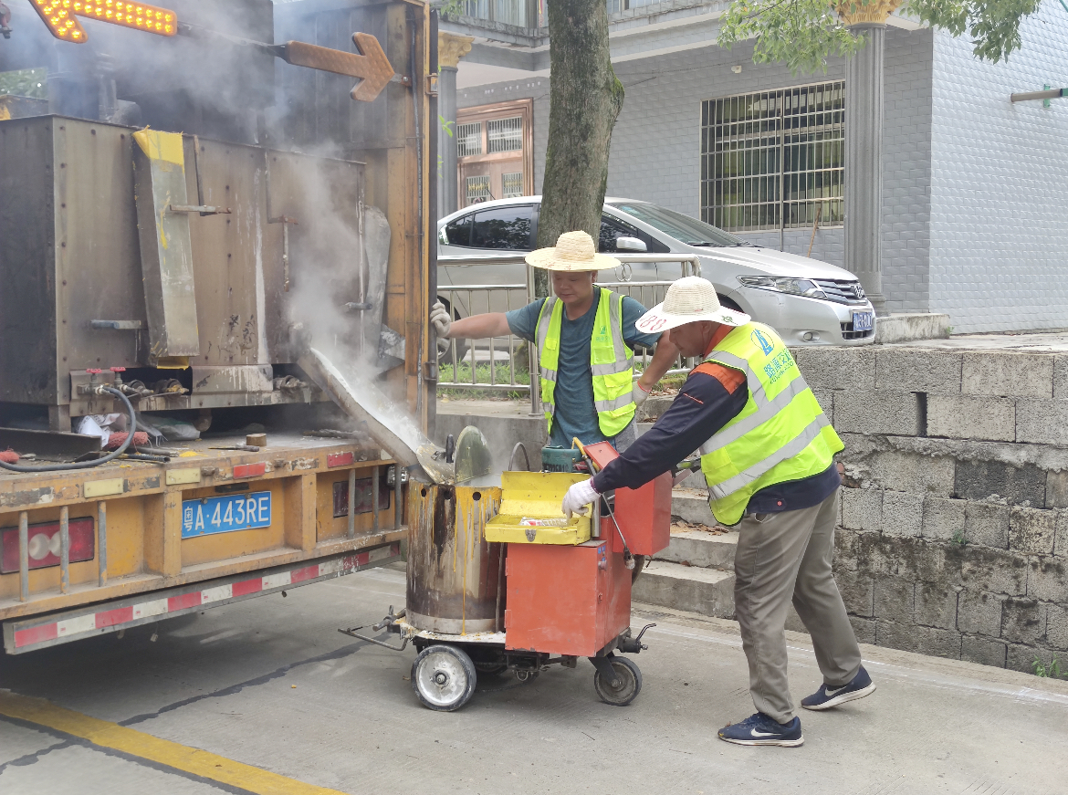 7月28日上午,在三堂街镇至白竹洲电站路段看到,县公路建设养护中心组织工人们在原基础上标线测量,对集镇路段标线补漆刷新。