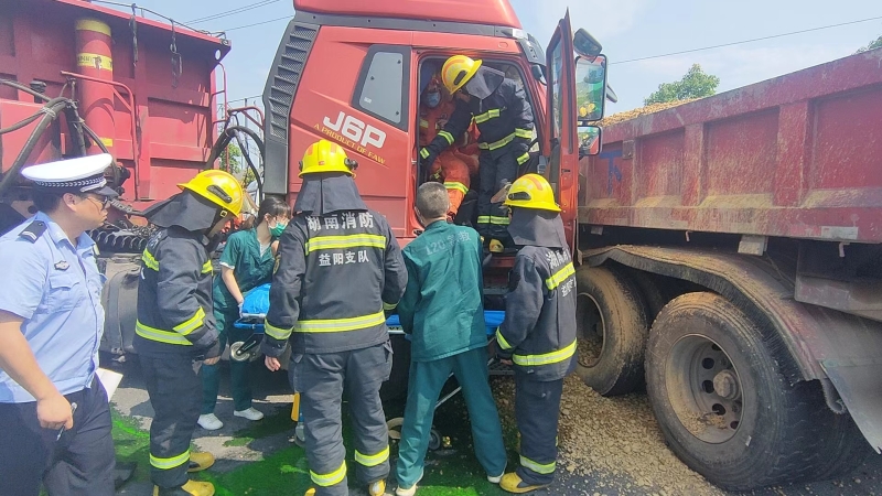 桃江:两车相撞一人受伤被困 消防救援半小时成功救出
