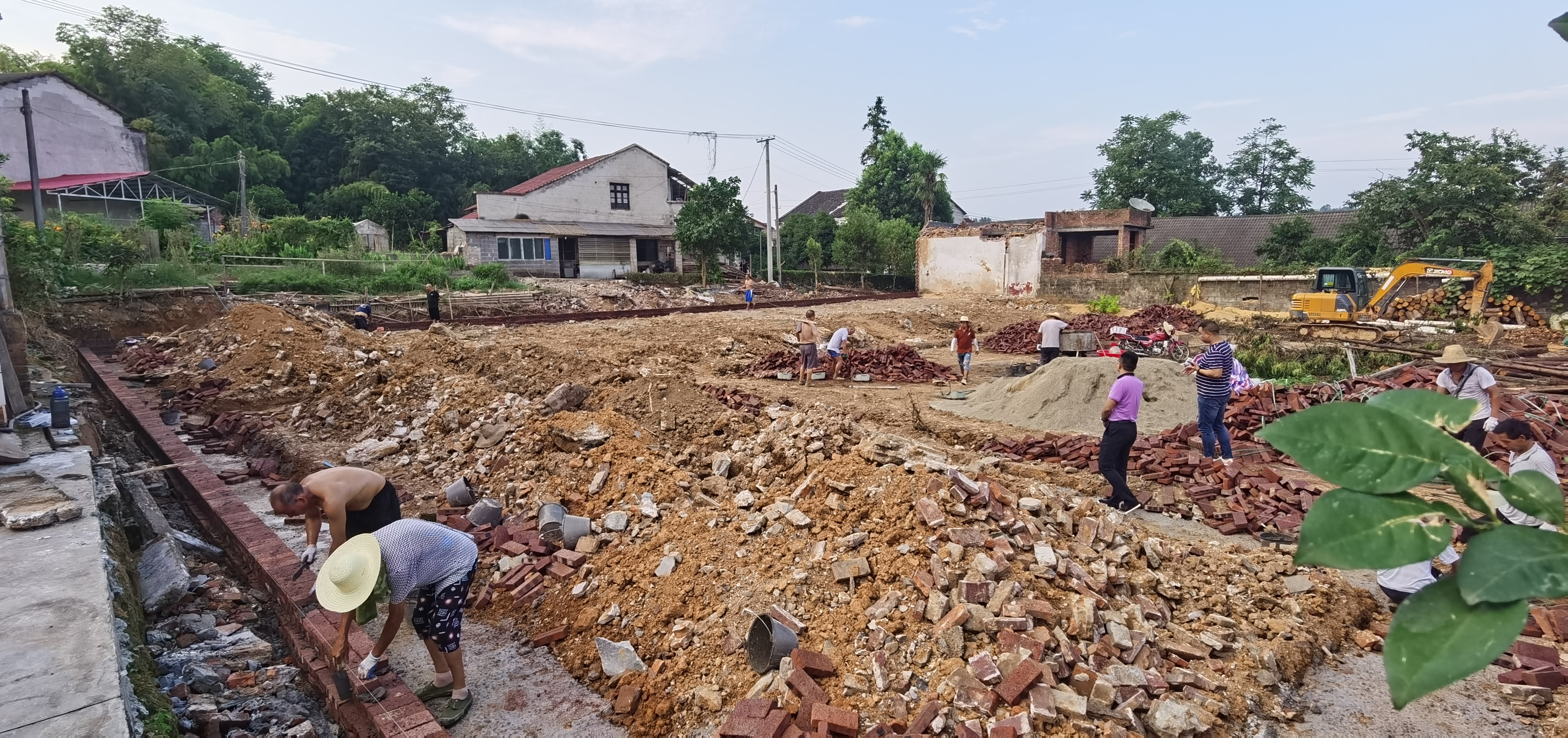 工人们正在原莲花坪村小学进行桩基础施工