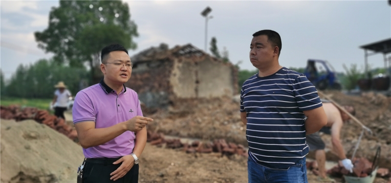 武潭镇党委副书记、镇长汪群(左)与基地负责人朱礼在项目现场