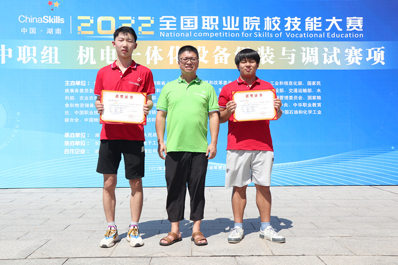 8月18日上午,为期两天的2022年全国职业院校技能大赛中职组“机电一体化设备组装与调试”赛项在长沙市电子工业学校闭幕。曾荣获省赛第一名的桃江县职业中专选手陈文宇与文畅两位同学代表湖南队参赛,勇夺本次比赛二等奖,创造了该校办学以来参加技能竞赛的历史最好成绩。
