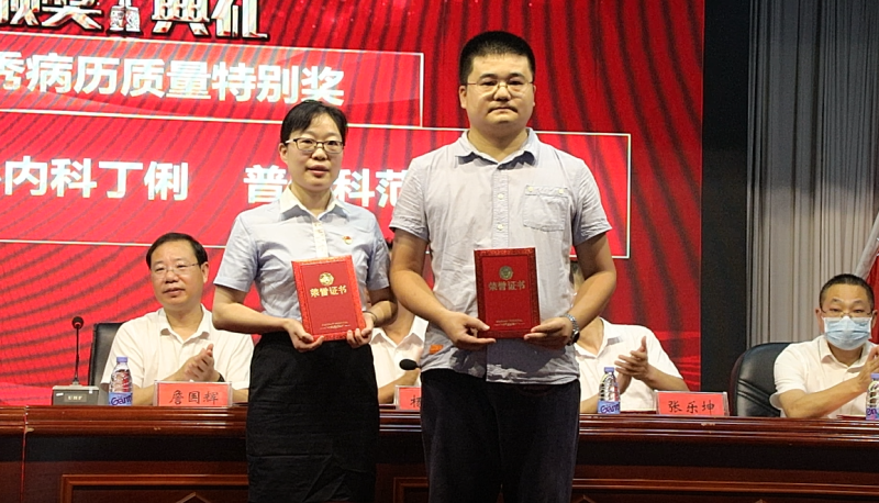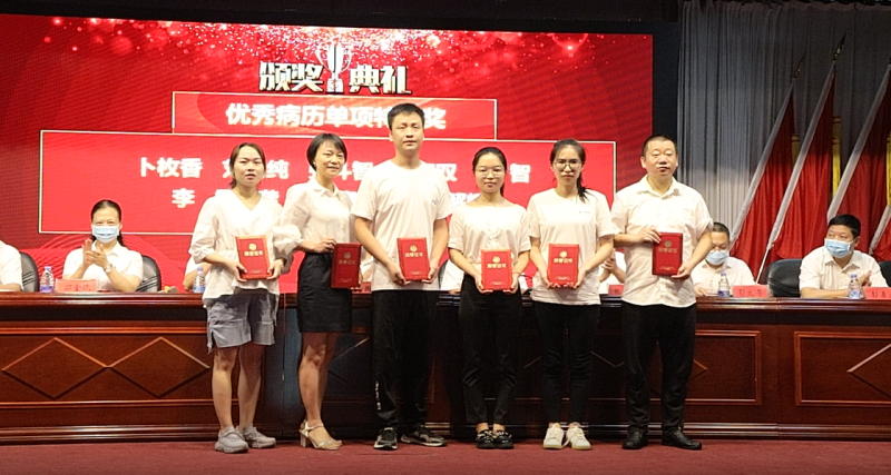 会议宣读了《桃江县人民医院关于表彰2022年“中国医师节”评优评先活动的表彰通报》;张轶夫、傅泽丰等13名科室医护人员分别获得教学查房竞赛一二三等奖和优秀组织奖;卜枚香、刘艳纯等18名医护人员分别获得2021年病历质量竞赛优秀病历单项特色奖、优秀病历质量特别奖和病历书写优秀科室奖;丁浩、丁磊林等31名医护人员获得医师节优秀医师;尤志强、刘俊等10名医护人员获得医师节最美医师;邓小玲、刘小春等8名医护人员获得医师节优秀科主任。
