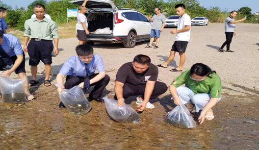 8月17日,县农业农村局、县人民检察院组织相关单位和当事人,在桃江经济开发区牛潭河老轮渡码头资江水域开展生态补偿人工增殖放流活动。