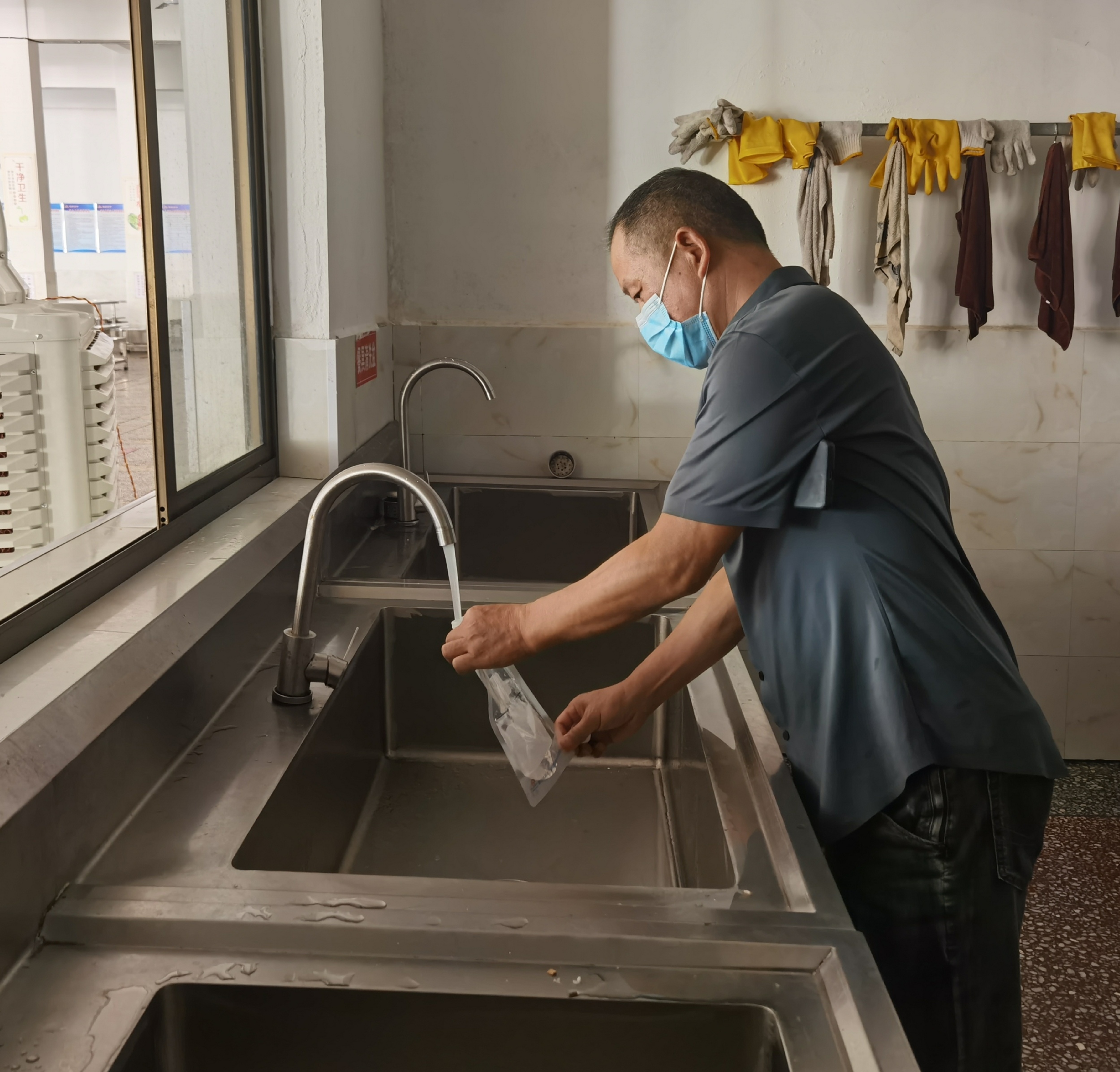 每到一处,县卫健局检测人员都现场检测了管网用水水质,用便携式检测容器对各校校园内包含教学楼、食堂在内的直饮水设施进行现场抽检,取样后,还对其他指标进行精细全面的检测。