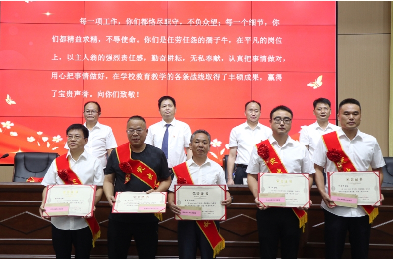 表彰会上,熊庆辅等17位教师获第三批从事职教30年坚守与奉献奖;周立田获第三批从事班主任15年匠心育人奖;蒋金龙等48位教师获年度优秀岗位奖,符旭东等8位教师获2022年度学校突出贡献奖。