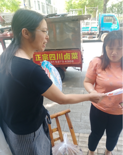 县档案馆工作人员向群众分发“五种情形”知识宣传扇