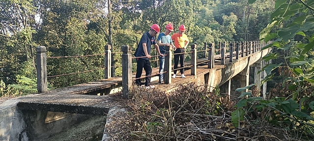 图为检查组在百亩村渡槽检查