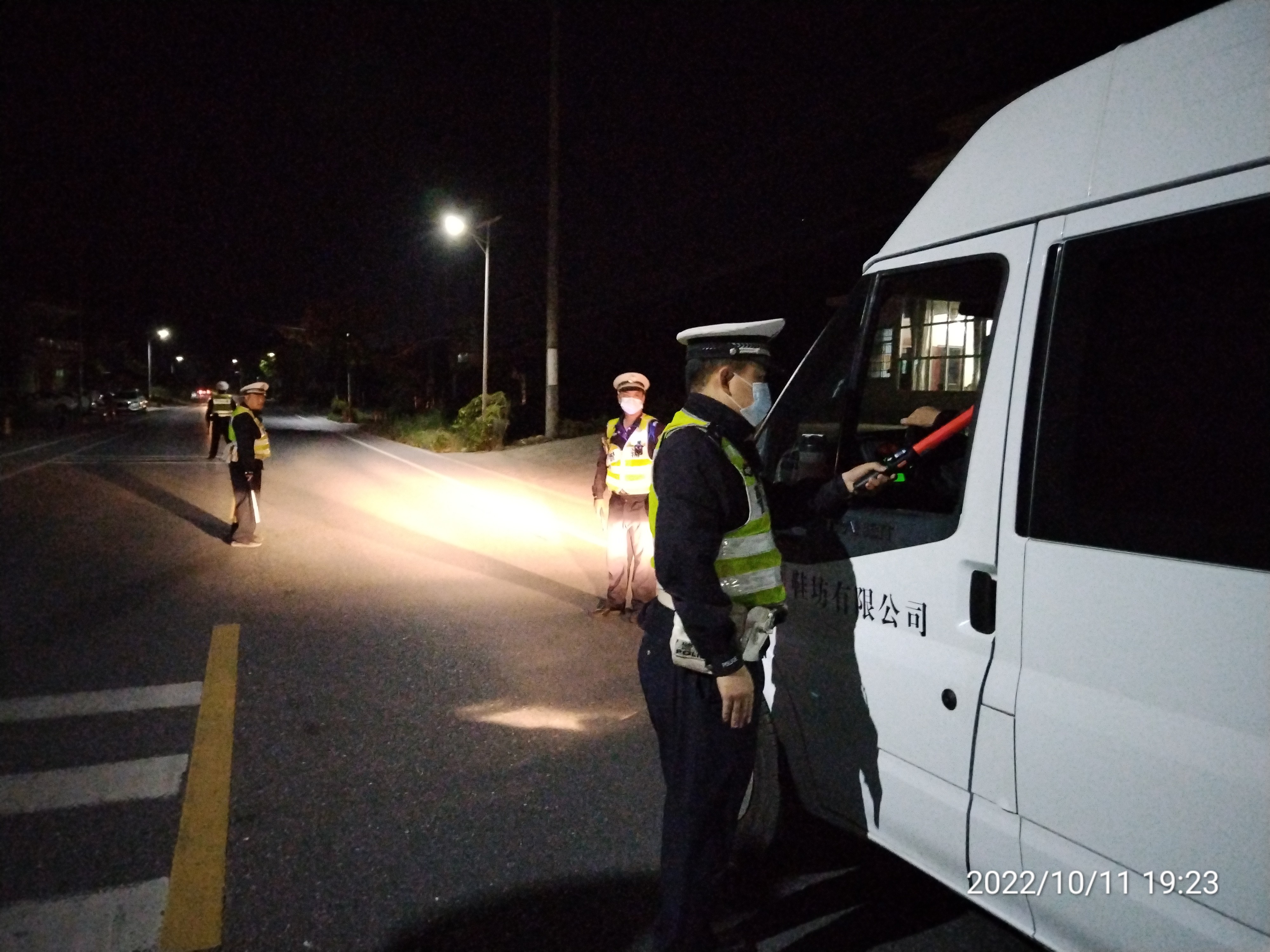 “师傅你好,请配合我们做呼气式酒精测试!”10月17日晚上9时,桃花江交警中队与机关部分警力联合在城区开展夜查行动,共查处酒驾2起,其他交通违法行为16起。当天,机关15名警力分别由大队领导带队,同时下沉至灰山港、三堂街、马迹塘等农村交警中队,全面协助开展“一盔一带”整治、隐患排查、夜巡夜查等工作,切实做到“白天见警察、晚上见警灯”。