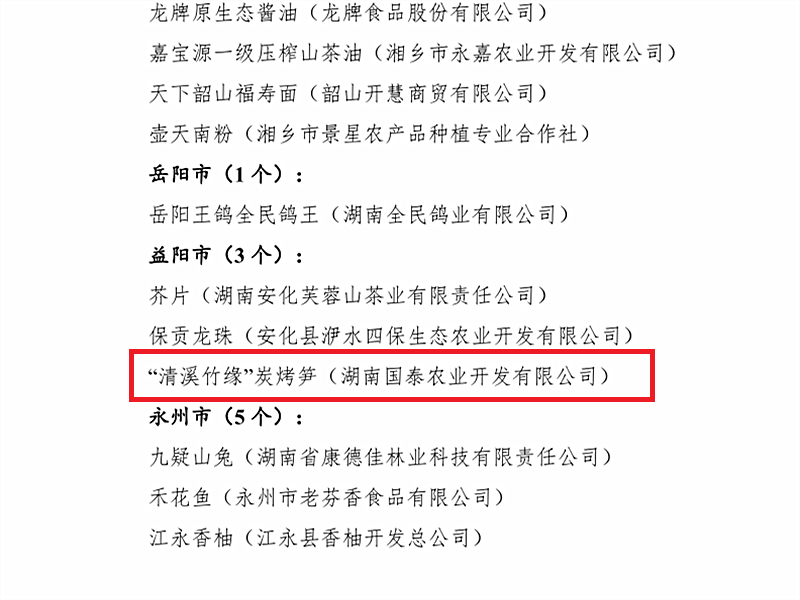 11月1日,笔者从县农业农村局乡村产业发展股(桃江县竹笋产业发展办)获悉,在刚刚闭幕的第23届中国中部(湖南)农业博览会上,我县竹缘林科开发有限公司的“竹聚缘”竹笋和湖南国泰农业开发有限公司的“清溪竹缘”原味糯米笋获得金奖。同时,湖南国泰农业开发有限公司的“清溪竹缘”炭烤笋还获得了“最受欢迎农产品奖”。