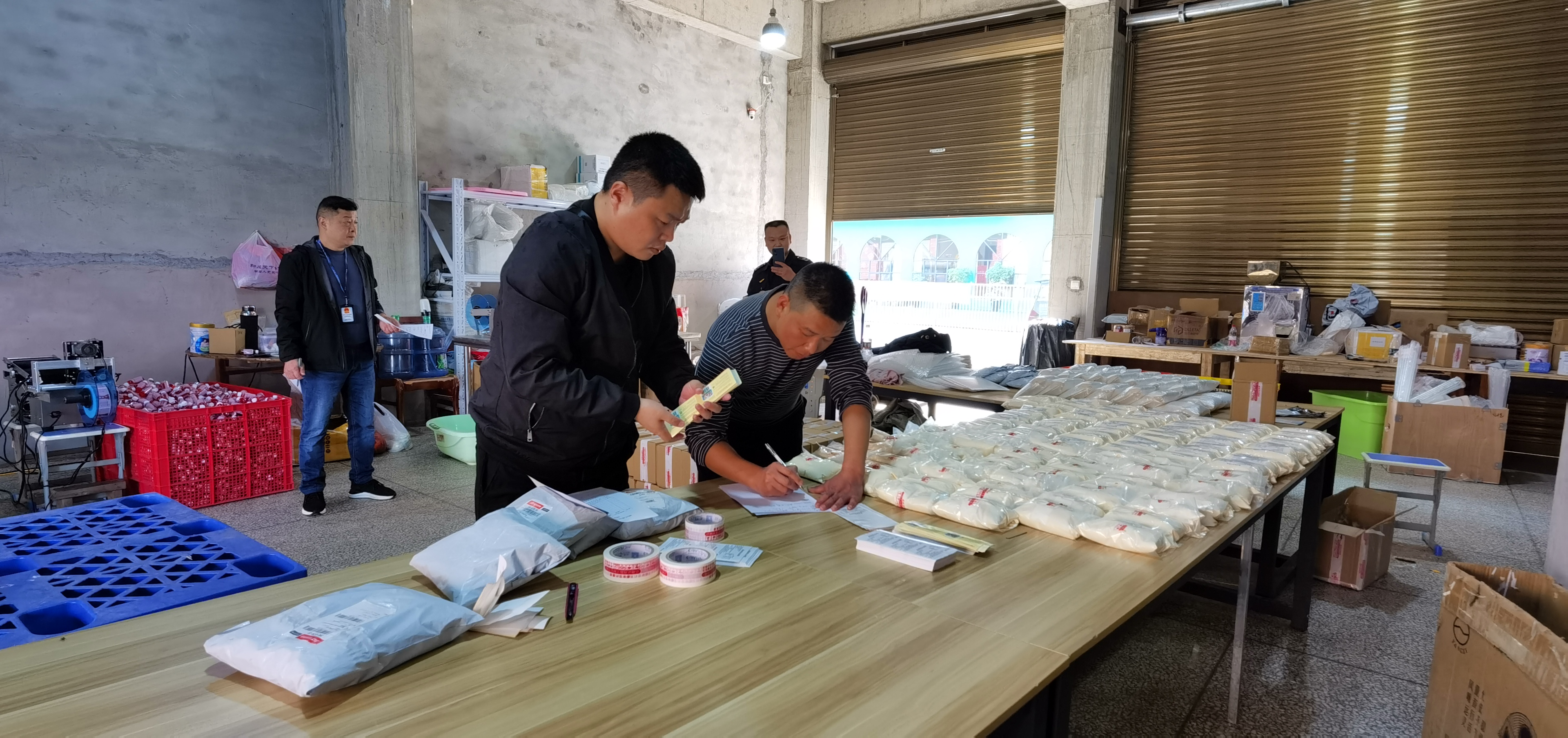 这个黑窝点位于桃花江镇打石湾村。执法人员到达这里时,10多名工人正在车间里灌装、打包奶粉。这些奶粉即将通过网上销售的形式发往全国各地。