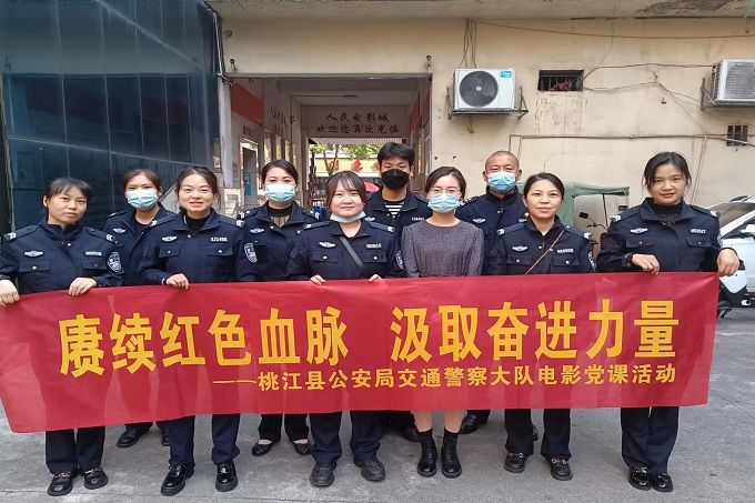 11月9日,县公安局交通警察大队组织党员观看红色电影《金家堤之恋》。