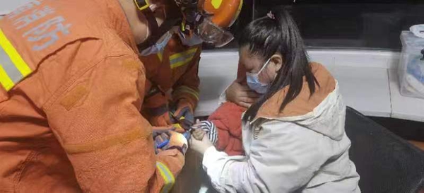 11月13日,一幼童因贪玩,将钢圈套在自己手上,被死死卡住,家长在多次尝试无果的情况下,急忙带着幼童来到县消防救援大队向消防员寻求帮助。