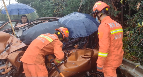 11月18日8时53分,桃花江消防救援站接到报警称,浮邱山乡水口山村上坡处发生车祸,有人员被困。桃花江消防救援站立即出动1台通讯车和1台抢险救援车赶往现场实施救援。