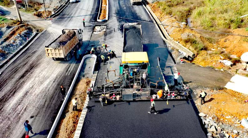 施工方负责人表示,为了抢抓进度,确保沥青摊铺施工按质按量完成,他们加大了机械和人员投入。目前,沥青摊铺已进入尾声。