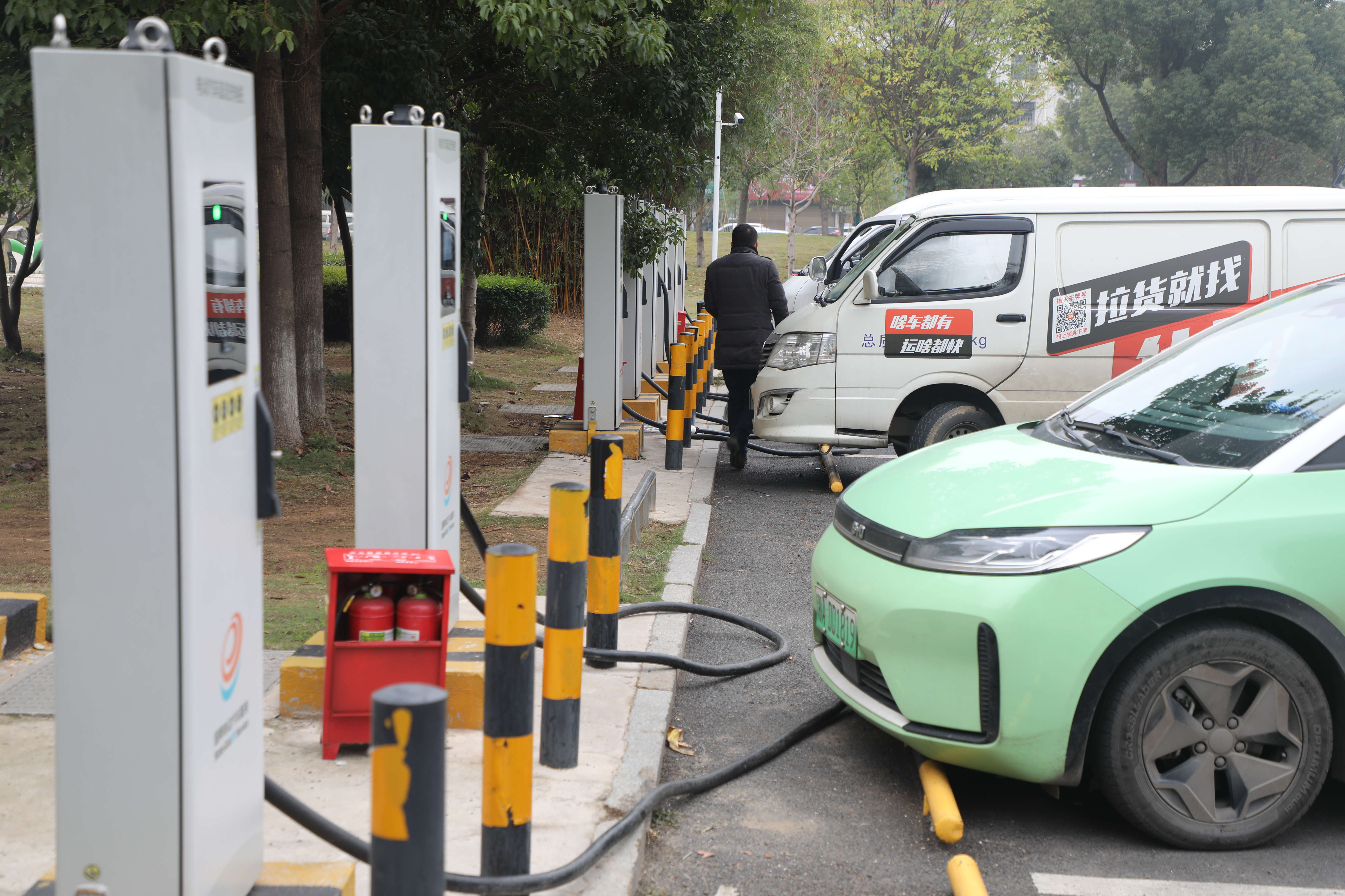 图为县城金盆广场内建设的充电基础设施