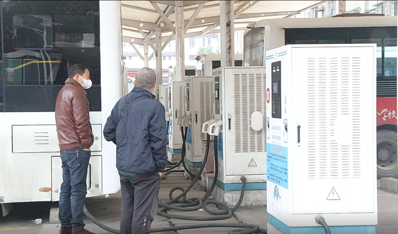 图为县城城乡客运公司站内建设的充电基础设施