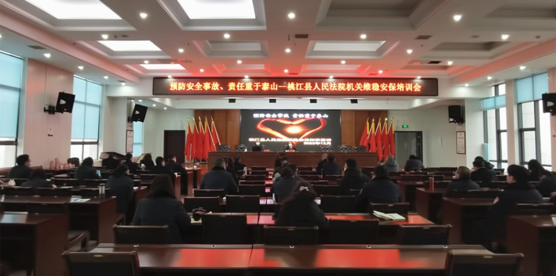 近日,桃江法院召开培训会,邀请湖南省高级人民法院平安办副主任、法警总队保卫处处长罗再良来院为全院干警开展机关维稳安保培训。