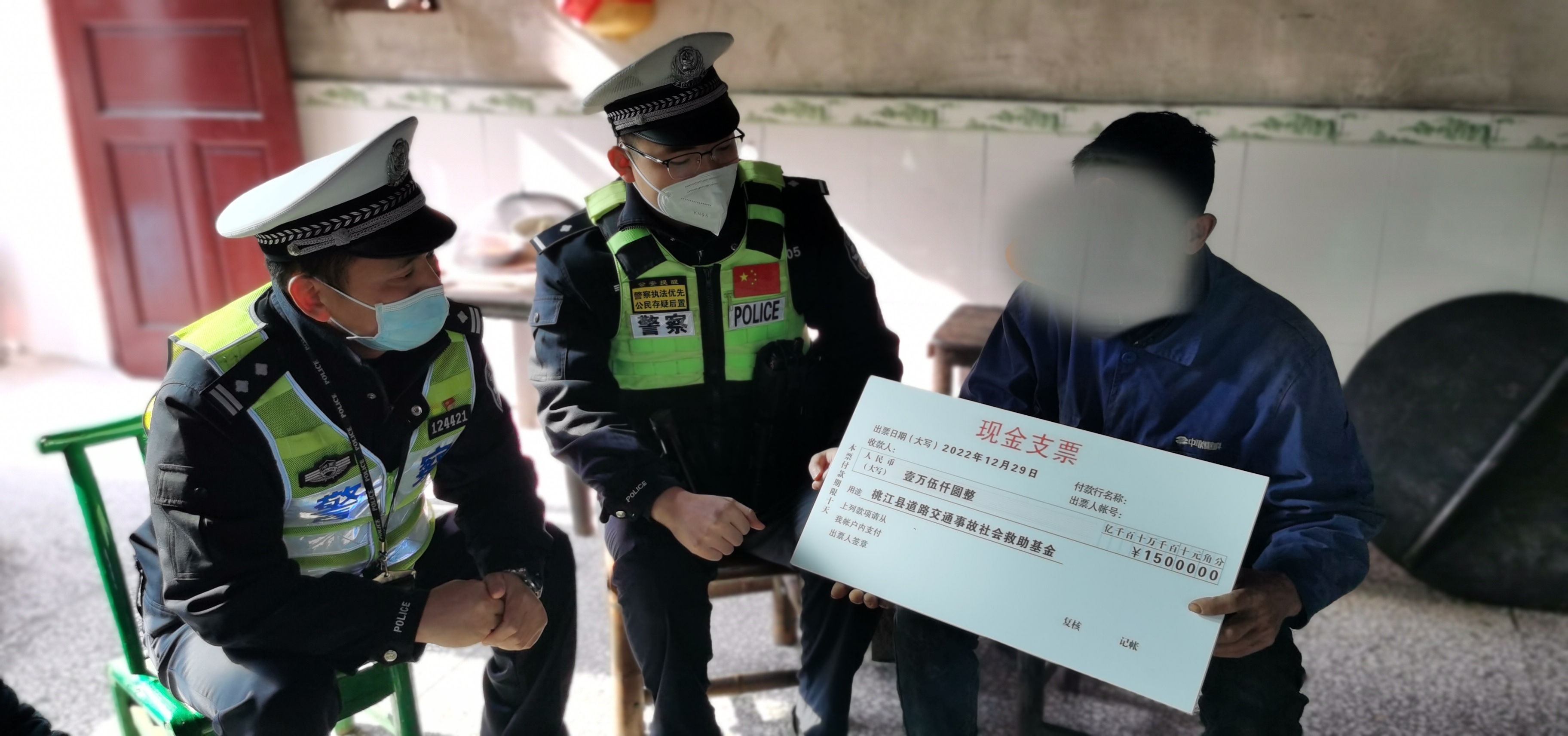 获悉这些情况后,县公安局交警大队马迹塘中队民警主动与当事人及其家属取得了联系,及时收集相关资料和信息,同时依照法定程序为他们申请道路交通事故社会救助金,并赶在岁末年初之际将救助金送到他们手中,以此帮他们渡过难关。